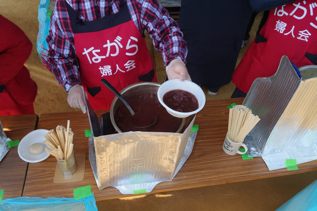 婦人会の皆様も、ご苦労様でした。ぜんざいにみえますか。ぜんざいですよ。(笑)