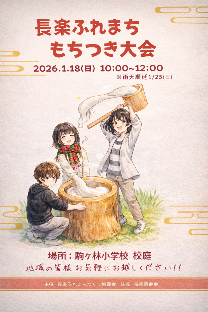 1月18日㈰に長楽ふれまち餅つき大会に参加させていただきました。